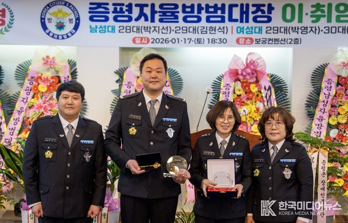 이어 제29대 김현석(34) 남성대장과 제30대 연명자(51) 여성대장이 새롭게 취임하며 자율방범대의 새로운 출발을 알렸다.