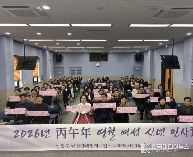 [ 한국미디어뉴스 이원영 기자 ] 영월군여성단체협의회(회장 김미자)는 1월 16일, 여성회관 2층 대강당에서 여성계 인사 130여 명이 참석한 가운데 ‘2026년 영월 여성 신년인사회’를 개최했다.