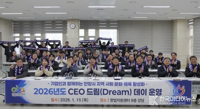 [ 한국미디어뉴스 이보영 기자 ] 안양산업진흥원은 15일 오후 3시30분 안양창업지원센터 강당에서 관내 기업인 150여 명을 대상으로 지역사회 문화·체육 활성화를 위한 ‘2026 CEO 드림(Dream) 데이’를 열었다.