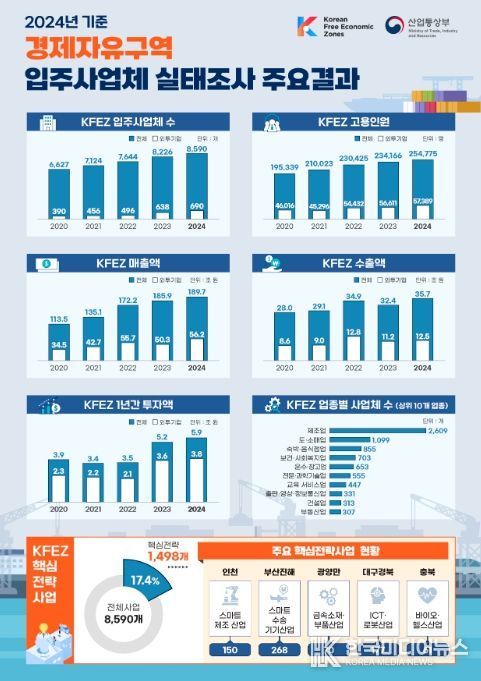 [ 한국미디어뉴스 이원영 기자 ] '2024년 기준 경제자유구역 입주사업체 실태조사'에 따르면 경제자유구역이 외국인투자기업 증가와 고용·투자 등이 크게 확대되며 지역경제의 핵심 성장거점으로서의 역할을 톡톡히 하는 것으로 나타났다.