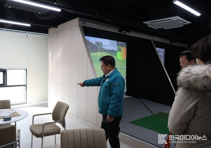 시설 내부에는 스크린 파크골프장을 갖춘 체육시설 공간과 커피·차를 즐길 수 있는 카페형 공간, 바둑·장기·보드게임 등을 할 수 있는 놀이공간 등이 마련돼 있다.