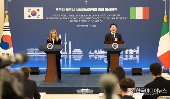 [ 한국미디어뉴스 황영수 기자 ] 이재명 대통령은 19일 조르자 멜로니 이탈리아 총리와의 정상회담 뒤 "저와 멜로니 총리는 전략적 동반자 명칭에 부합하는 미래지향적 수준으로 양국 관계를 더욱 발전시켜 나가기로 합의했다"고 밝혔다.