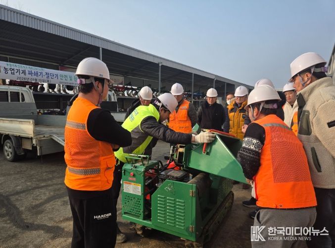 이날 교육은 농업진흥과 농기계팀의 영농부산물 파쇄 시 주요 재해인 장비 상하차, 신체 끼임 등에 대응한 안전 이론교육과 실습을 진행했으며, 토의를 통한 위험성평가표 및 일일 점검일지 평가표 작성 등 안전교육을 실시했다.