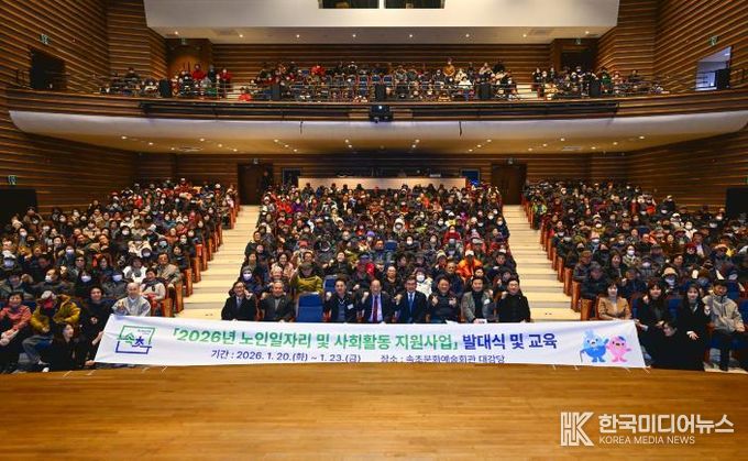 [ 한국미디어뉴스 이원영 기자 ] 속초시가 1월 20일부터 23일까지 4일간 속초문화예술회관에서 ‘2026년 노인 일자리 및 사회활동 지원사업 발대식’을 개최하고 노인 일자리 사업을 본격 추진한다.