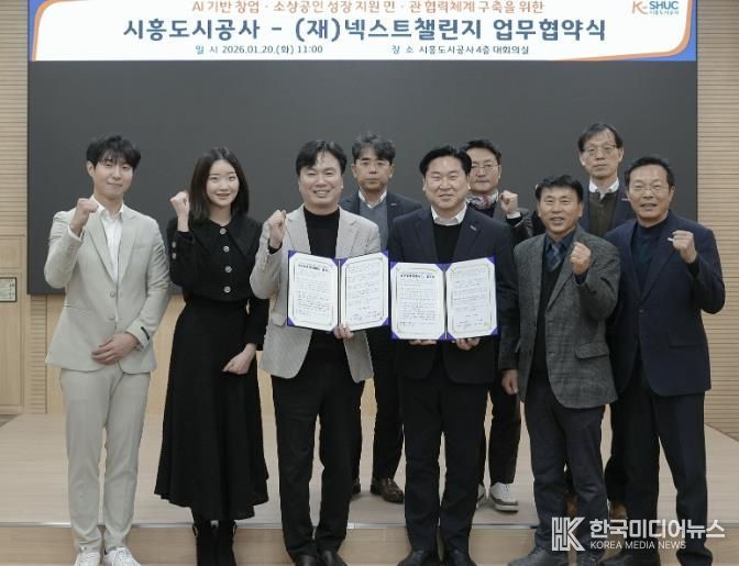[ 한국미디어뉴스 이보영 기자 ] 시흥도시공사는 지난 20일, 재단법인 넥스트챌린지(이하 넥스트챌린지)와 AI를 기반으로 창업·소상공인 성장 지원 민·관 협력 체계 구축을 위한 업무협약을 체결했다고 밝혔다.