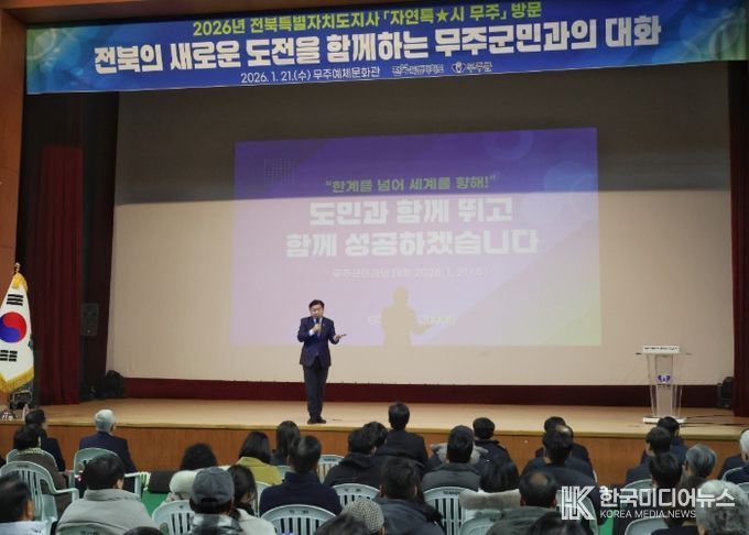 [ 한국미디어뉴스 이종철 기자 ] 김관영 전북특별자치도지사가 21일 무주군을 찾았다. ‘2026년 도민과의 대화’를 위해 무주를 방문한 김관영 지사는 먼저, 무주반딧불시장에서 상인들을 만나 애로사항을 청취하고 지역경제 활성화 의지를 전달했다.
