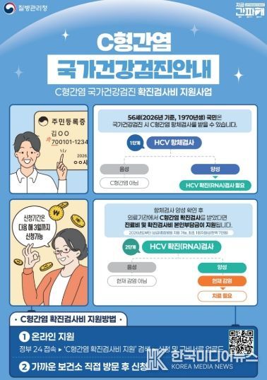 지난해 시작한 ‘C형간염 확진검사비 지원사업’은 기존 병·의원급 의료기관의 검사 대상자로 한정됐으나, 올해부터는 종합병원과 상급종합병원에서 확진 검사를 받은 대상자까지 확대된다.