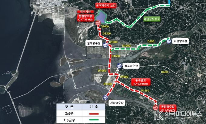 이 사업은 새만금 농생명용지에 안정적이고 지속적인 농업용수 공급을 위해 통합양수장 1개소 신설과 옥구저수지 보수‧보강, 송수관로 24.9km 등을 설치하는데 2,368억 원의 재정을 투입하는 사업이다.