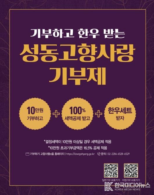 그간 성동구는 고향사랑기부제 활성화를 위해 다양한 정책과 사업을 꾸준히 추진하며 모금 기반을 넓혀가고 있다. 제도 시행 3년 차를 맞아 연말정산 세액공제와 답례품 제공 등 고향사랑기부제의 장점을 적극적으로 홍보해 기부자들이 제도에 보다 친숙해질 수 있도록 했으며, 이를 통해 기부 참여 저변을 안정적으로 확대해 왔다.