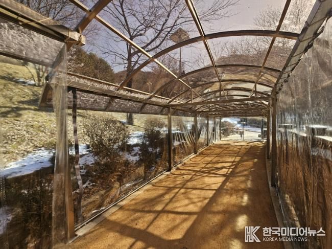 시는 2024년 조성된 병목안시민공원 맨발산책길 구간에 총 160m 길이의 지붕 캐노피와 방한 비닐막을 설치해 기온이 낮은 겨울철에도 체온 유지와 안전한 보행이 가능하도록 했다.