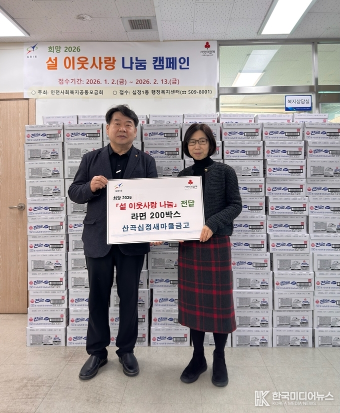 홍승규 산곡십정새마을금고 이사장은 “설 명절을 맞아 지역의 어려운 이웃들에게 도움이 되길 바라는 마음으로 성품을 준비했다”며 “앞으로도 지역과 상생하는 나눔 활동을 지속해 나가겠다”고 말했다.