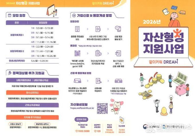 가입을 희망하는 대상자는 주소지 읍면동 행정복지센터에서 신청할 수 있으며, 자산형성 포털 사이트를 통해 가입 일정 등 확인이 가능하다.