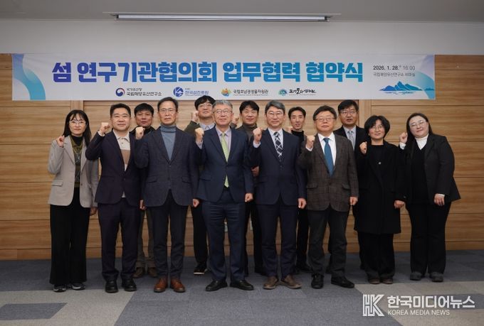 [ 한국미디어뉴스 이종철 기자 ] 국가유산청 국립해양유산연구소(소장 이은석)는 한국섬진흥원(원장 조성환), 국립호남권생물자원관(관장 박진영), 국립목포대학교 도서문화연구원(원장 홍석준)과 1월 28일 오후 4시 국립해양유산연구소 회의실(전남 목포시)에서 섬을 주제로 한 연구 협력과 정보 공유를 위한 ‘섬 연구기관협의회’ 업무협력 협약을 체결했다.