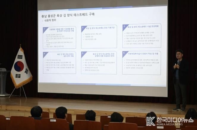 [ 한국미디어뉴스 이원영 기자 ] 홍성군은 충청남도 균형발전사업과 해양수산부 국책과제와 연계하여 추진 중인 육상 김 양식 테스트베드 조성 사업과 관련하여, 기본계획 수립을 위한 주민설명회를 지난 29일 홍성군 농업기술센터에서 개최했다고 밝혔다.