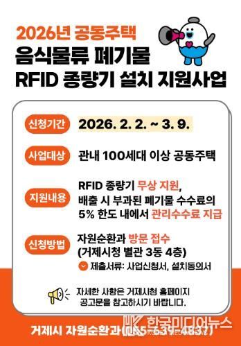 [ 한국미디어뉴스 이원영 기자 ] 거제시는 지난해에 이어 올해도 공동주택을 대상으로 음식물류 폐기물 RFID 종량기 설치 지원사업을 추진한다고 밝혔다.