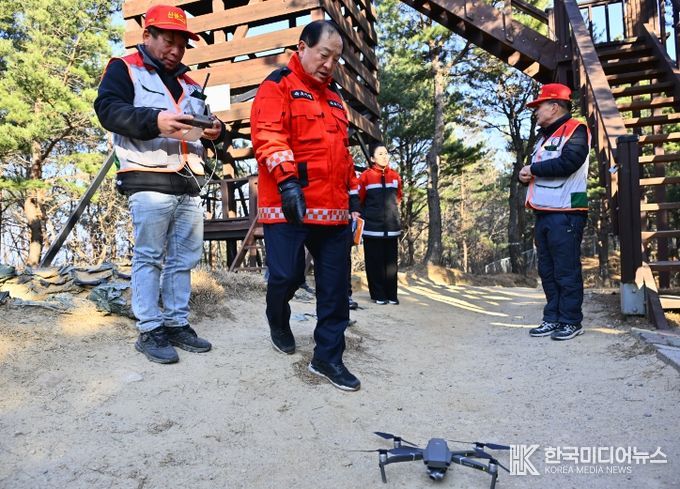 1월 1일부터 산불전문예방진화대 35명을 조기 배치해 운영하고 있으며, 1월 26일부터는 산불예방 주야간 감시원과 드론감시원을 포함한 감시인력 100명을 산불 취약지 일원에 일제 배치해 운영 중이다.