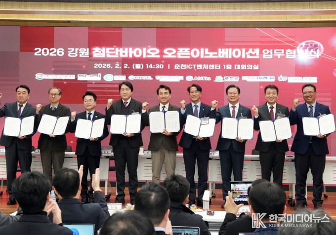 [ 한국미디어뉴스 이원영 기자 ] 홍천군은 2월 2일, 강원특별자치도, 춘천시와 함께 춘천 ICT벤처 센터에서 「강원 첨단 바이오 오픈 이노베이션 프로그램」 업무협약식과 사업설명회를 개최하고, 올해부터 사업을 본격 확대 추진한다고 밝혔다.