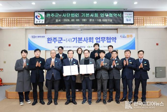 [ 한국미디어뉴스 이종철 기자 ] 완주군이 사단법인 기본사회와 손잡고 지역 여건에 맞는 기본사회 정책사업 발굴·추진에 나선다.