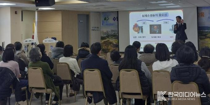 [ 한국미디어뉴스 이보영 기자 ] 수원시 팔달구는 지난 2일, 수원시어린이집연합회 주관으로 팔달구청 대회의실에서 관내 보육교직원을 대상으로 심폐소생술(CPR) 및 응급처치 교육을 실시했다고 밝혔다.