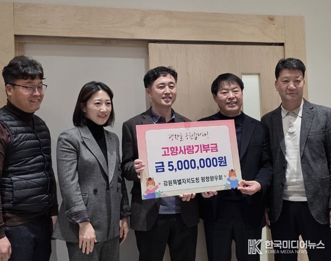 [ 한국미디어뉴스 이원영 기자 ] 강원특별자치도청 평창향우회(회장 이대균)은 지난 2일, 고향 평창을 응원하는 마음을 담아 고향사랑기부금 5백만 원을 기탁했다.