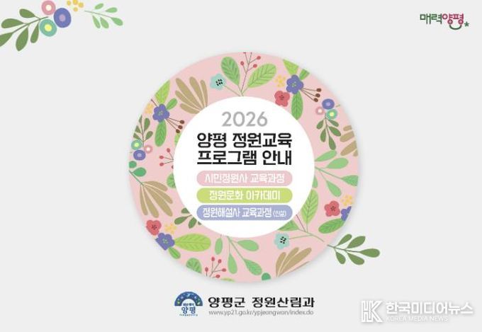 [ 한국미디어뉴스 민경환 기자 ] 양평군은 올해 제14회 경기정원문화박람회 개최를 앞두고, 특별 신설 교육과정을 포함한 2026년 정원교육 운영계획을 발표했다. 양평군 정원교육은 △시민정원사 △정원문화아카데미 △정원해설사 등 세 가지 분야로 운영된다.
