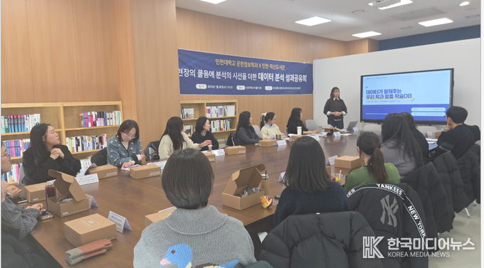 [ 한국미디어뉴스 이원영 기자 ] 인천대학교 문헌정보학과 데이터·인공지능 동아리 ‘D.A.L(Data & AI for Libraries, 지도교수 김규환)’이 지난 1월 28일 인천대학교 송도캠퍼스 이룸관에서 ‘2025년 하반기 도서관 협력 성과공유회’를 개최했다.