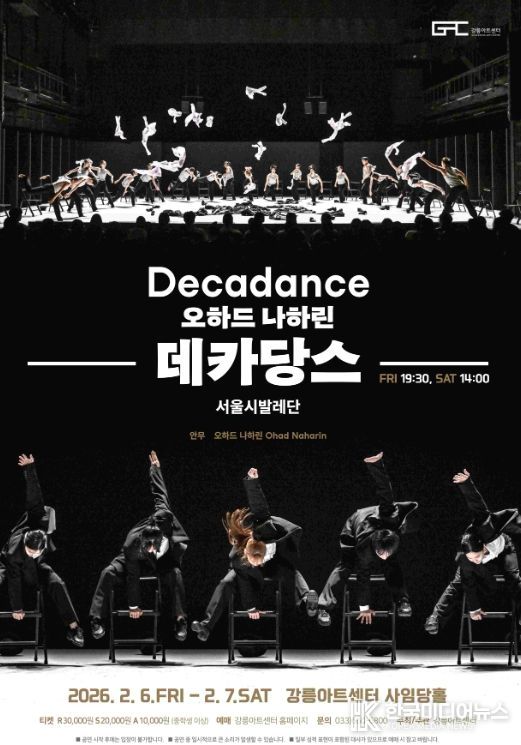 한편, 강릉아트센터는 이번 서울시발레단의 '데카당스' 공연을 시작으로 국립발레단(3·5월), 유니버설발레단(11월) 둥 국내를 대표하는 발레단들과 함께하는 기획공연을 순차적으로 선보일 예정이다.
