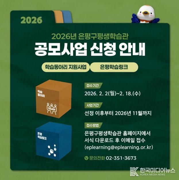 접수 기간은 오는 18일까지며, 신청을 희망하는 시민(기관·단체), 학습동아리는 은평구평생학습관 누리집에서 사업별 모집공고를 확인한 후 신청 서식을 작성해 이메일로 제출하면 된다.
