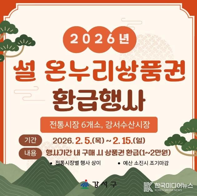 서울 강서구는 설 명절을 맞아 전통시장에서 ‘온누리상품권 환급행사’와 전통 놀이 체험 등 다양한 행사를 개최한다.