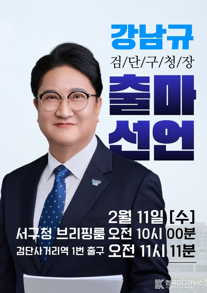 [ 한국미디어뉴스 이원영 기자 ] 강남규 더불어민주당 정책위원회 부의장이 오는 2월 11일 초대 검단구청장 출마를 공식 선언한다.