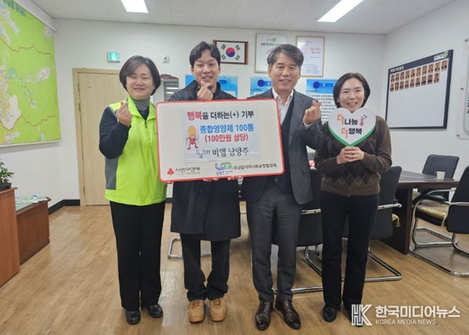 [ 한국미디어뉴스 김서안 기자 ] 남양주시는 4일 유통 전문회사 비엠 남양주가 지역 내 취약계층을 위해 마련한 종합영양제 100통을 오남읍 지역사회보장협의체에 전달했다고 밝혔다.