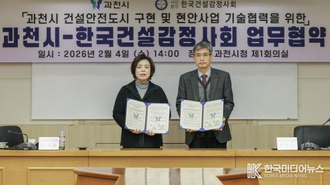 신계용 과천시장은 “이번 업무협약은 주요 개발사업 전 과정에서 발생할 수 있는 건설 분쟁과 감정 사안에 체계적으로 대응하기 위한 기반을 마련한 것”이라며 “앞으로도 시민 안전을 최우선으로 하는 건설안전도시 구현에 힘쓰겠다”라고 밝혔다.