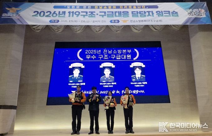[ 한국미디어뉴스 이종철 기자 ] 여수소방서는 지난 2월 5일 쏠비치 진도에서 전라남도 소방본부 주관으로 열린 2026년 구조·구급대응 업무 담당자 워크숍에 참석해, 별도로 진행된 『2025년 우수 구조‧구급대원 시상식』에서 수상의 영예를 안았다.