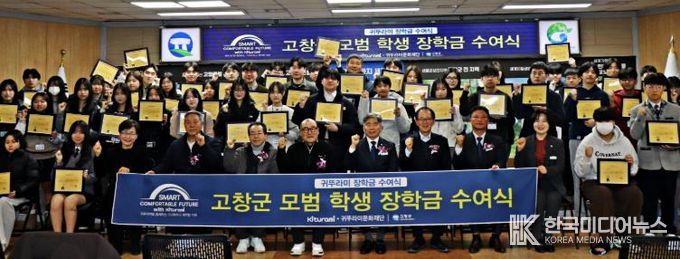 [ 한국미디어뉴스 이종철 기자 ] 고창군은 6일 군청 5층 회의실에서 ‘2026년 귀뚜라미 문화재단 장학금 수여식’을 개최했다고 밝혔다.