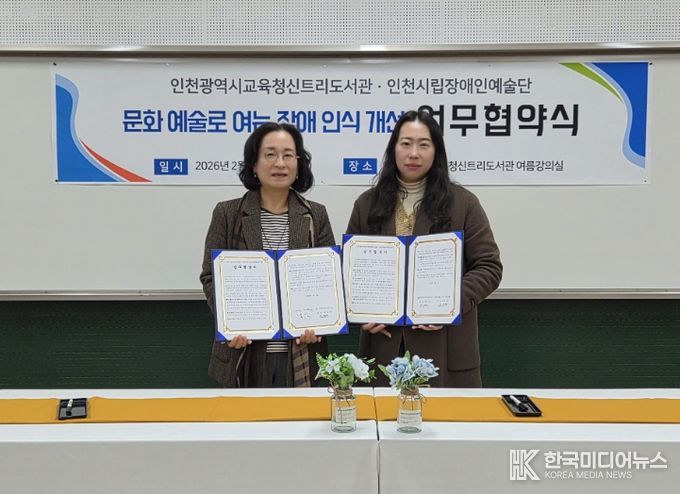 [ 한국미디어뉴스 이원영 기자 ] 인천광역시교육청신트리도서관은 6일 인천시립장애인예술단과 ‘문화예술을 통한 장애 인식 개선 및 포용적 문화 확산을 위한 업무협약’을 체결했다.