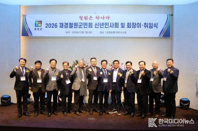 [ 한국미디어뉴스 이원영 기자 ] 철원군은 2월 7일 오후 6시 서울 삼정호텔에서 열린 '2026년 재경철원군민회 이취임식 및 신년인사회'에 참석해 재경철원군민회의 새 출발을 축하하고, 철원군과 수도권 향우 간 상생 협력 강화 의지를 밝혔다.