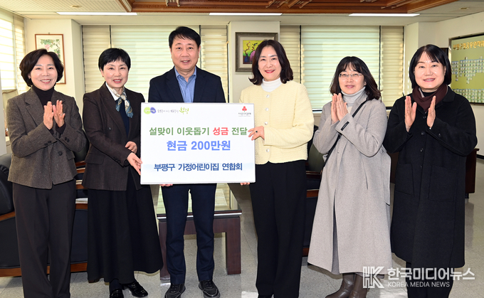 [ 한국미디어뉴스 양선희 기자 ] 인천 부평구 가정어린이집 연합회는 지난 6일 설맞이 이웃돕기 성금 200만 원을 부평구에 전달하였다.