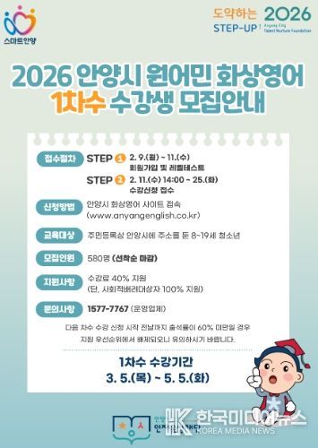 [ 한국미디어뉴스 이보영 기자 ] 안양시 인재육성재단은 관내 학생들의 외국어 의사소통 능력 향상과 글로벌 역량 강화를 위해 ‘2026 안양시 원어민 화상영어’ 사업을 지속 운영한다고 9일 밝혔다.