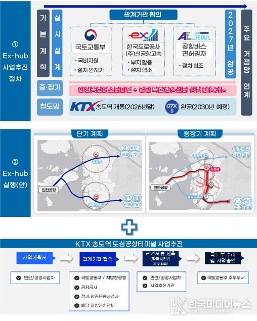 ex-HUB는 공항버스와 도시 내 대중교통을 직접 연결하는 환승시설로, 기존 인프라를 활용해 저비용·단기간 구축이 가능하다는 장점이 있다.