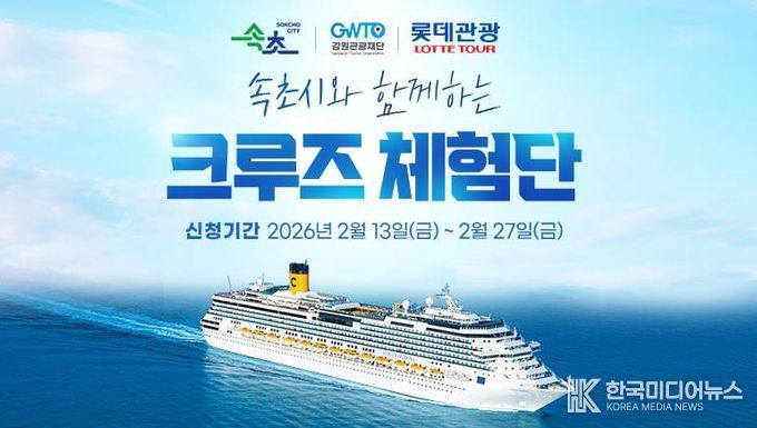 [ 한국미디어뉴스 이원영 기자 ] 속초시가 크루즈 관광 저변을 넓히고 속초항을 환동해권 크루즈 중심지로 도약시키기 위해 ‘2026년 속초항 모항 크루즈 체험단’을 모집한다.