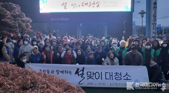 [ 한국미디어뉴스 김서안 기자 ] 의정부시 송산1동주민센터는 2월 10일 다가오는 설 명절을 맞아 귀성객들에게 쾌적한 마을 환경을 제공하기 위해 ‘깨끗한 마을 만들기’ 대청소를 실시했다.