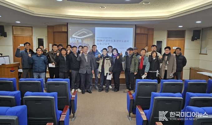 [ 한국미디어뉴스 이원영 기자 ] 강릉시는 11일 홍제정수장 회의실에서 관계 공무원과 급수공사 대행업체 대표자 등 30여 명이 참석한 가운데, 상수도 사고 긴급복구 체계 점검과 2026년 주요행사 대응 준비를 위한 간담회를 개최했다고 밝혔다.