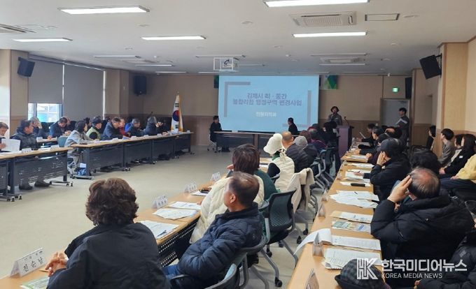 [ 한국미디어뉴스 이종철 기자 ] 김제시가 2024년부터 3년에 걸쳐 추진하고 있는 리·동간 불합리한 행정구역 경계 조정사업을 위해 설명회를 가지며 시민들의 호응을 얻고 있다.