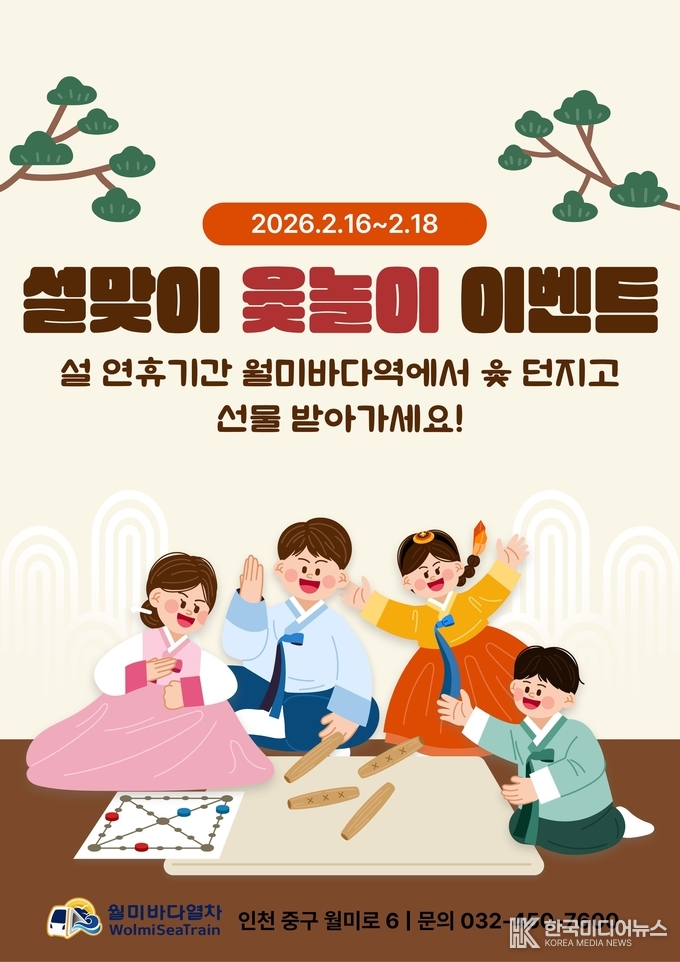 공사 최정규 사장은 “설 연휴를 맞아 가족 단위 방문객이 함께 즐길 수 있는 전통놀이 체험을 준비했다”며 “연휴 기간 정상 운영을 통해 시민과 관광객이 월미바다열차를 이용하길 바란다”고 말했다.