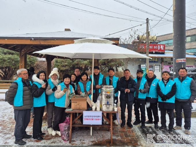 유영호 위원장은 “작은 정성이지만 매서운 추위 속에서 장을 보러 나오신 어르신들께 잠시나마 따뜻한 기운을 얻으셨으면 좋겠다”라며, “앞으로도 주변에 소외된 이웃이 없는지 세심히 살피고, 생활 밀착형 나눔 봉사를 지속해 온기 넘치는 능주면을 만들어 나가겠다”라고 말했다.