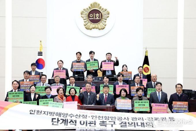 [ 한국미디어뉴스 이원영 기자 ] 인천광역시의회가 정부를 향해 “인천지방해양수산청과 인천항만공사의 관리·감독권 등 주요 기능을 인천광역시로 단계적으로 이관하라”고 촉구했다.