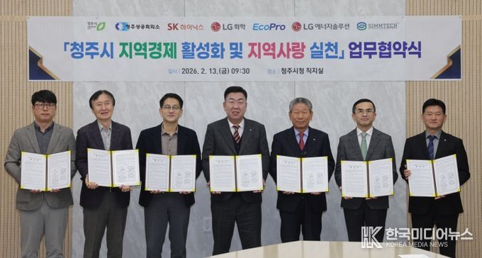 이날 협약식에는 이범석 청주시장과 차태환 청주상공회의소 회장, 박호현 SK하이닉스㈜ 부사장, 김영대 ㈜LG화학 청주공장 대외협력팀장, 최상운 에코프로 부사장, 김용술 ㈜LG에너지솔루션 오창주재임원, 이규득 ㈜심텍 상무가 참여했다.