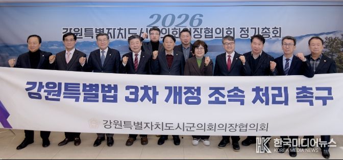 [ 한국미디어뉴스 이원영 기자 ] 2026년 강원특별자치도시군의회의장협의회 정기총회가 13일 춘천 세종호텔에서 열렸다.