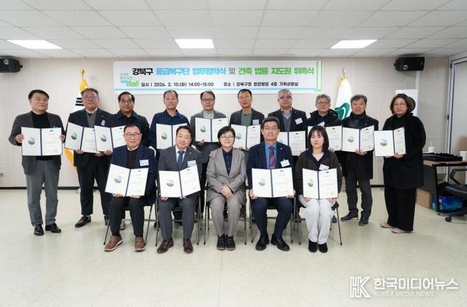 [ 한국미디어뉴스 이원영 기자 ] 서울 강북구는 지난 10일 구청 기획상황실에서 ‘민간위험시설물 응급복구단 업무협약식’과 ‘건축 법률상담실 건축지도원 위촉식’을 개최해 재난 대응 역량 강화와 구민 권익 보호를 위한 민관 협력 기반을 한층 강화했다고 밝혔다.