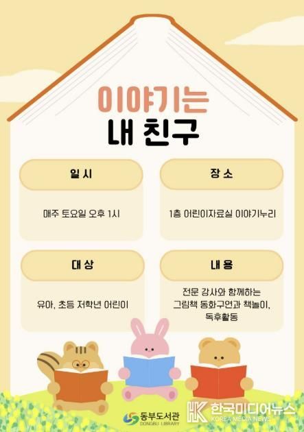 이번 프로그램은 유아 및 어린이를 대상으로 매주 토요일 오후 1시 동부도서관 어린이자료실에서 운영된다. 단순한 책 읽기를 넘어, 강사의 실감 나는 동화구연과 아이들의 눈높이에 맞춘 다채로운 책놀이 독후활동을 함께 진행하여 독서의 즐거움을 더할 예정이다.